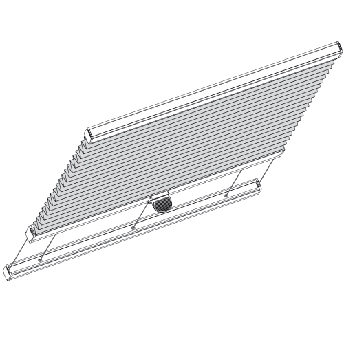 Denna lutande modell gör det möjligt att sätta solskydd i fönster som inte är lodräta, tex takfönster. Plisségardinen manövreras enkelt med ett lätt tryck på handlaget eller med en dragkäpp om fönstret sitter långt upp. Gardinen monteras i fönstret med hjälp av linor, vilket gör att den följer fönstret även när det är öppet. Modellen kan tillverkas i storlekar upp till 150 cm i bredd, men med hög höjd för långa takfönster.